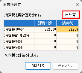 消費税額の再計算を行うか、日々の売上取引の[税処理]を「合計請求」に変更して合計請求書を作成します。