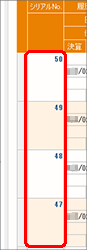 同一シリアルNo.の履歴が複数ある場合(仕訳が訂正・削除された場合)、履歴は同一シリアルNo.内で[履歴番号]の降順に並び、最新のものは[作業区分]が「有効」になります。