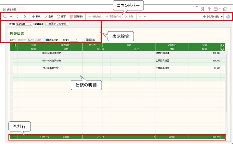 ●[振替伝票]ウィンドウ