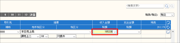 | 5. | 続けて、[摘要]や[税区分]などを入力します。 |