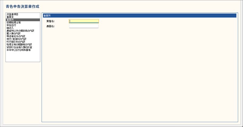 青色申告決算書(農業所得用)[事業所]の設定