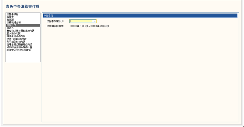 青色申告決算書に印刷される会計期間が表示されます。