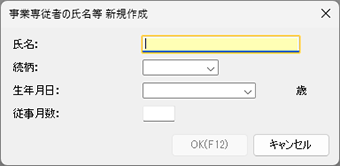 [勘定科目体系]が[一般][不動産]の時に表示されます。 入力した従業員の生年月日から年齢を自動計算します。 |
