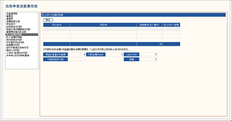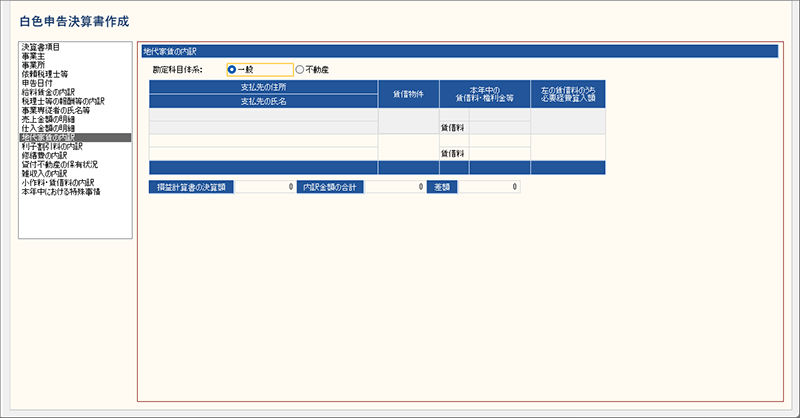 [左のうち必要経費算入額]の合計が表示されます。 |