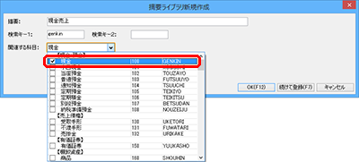 | 3. | [摘要ライブラリ新規作成]ダイアログが表示されるので、摘要と検索キーを入力し、必要に応じて[関連する科目]を選択します。 |