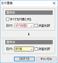 3. [日付置換]ダイアログが表示されるので、[置換前]の[日付]に「0720」、[置換後]の[日付]に「0718」と入力し、[OK]ボタンをクリックします。