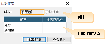 [仕訳作成]ダイアログの設定項目については、「[仕訳作成]ダイアログの詳細」を参照してください。