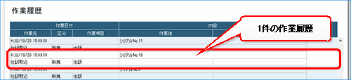 仕訳に対する作業履歴の場合、[内容]に仕訳のシリアルNo.が表示され、詳細は表示されません。作業の詳細は、[仕訳履歴]ウィンドウで確認してください。