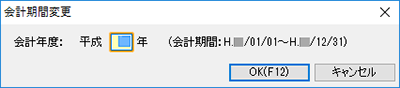 会計期間が表示されます。 [会計期間変更]ダイアログを開いた直後は、現在開いている年度が選択されています。 |