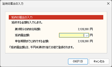 [延納の届出の入力]ダイアログでは、延納する金額を入力します。