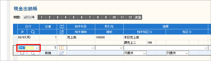 | 5. | 続けて、[摘要]や[税区分]などを入力します。 |