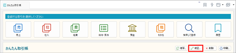 取引の入力(かんたん取引帳) > かんたん取引帳への入力 > 入力した取引を修正・削除する