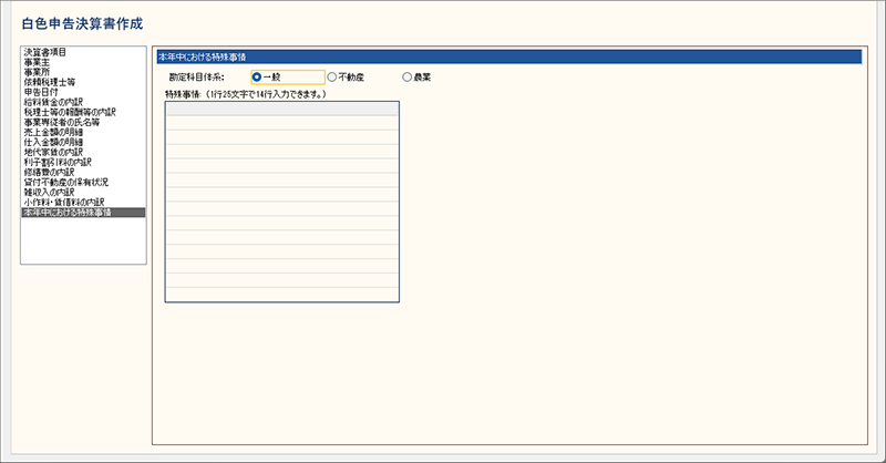 農業所得がある場合は、業種名を10文字以内で入力します。 |