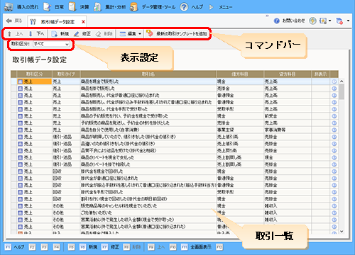 [取引区分] | 登録されている取引の取引区分が表示されます。 |