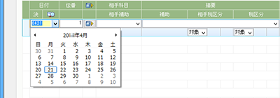 カレンダーで目的の日付をクリックすると、その日付を入力でき、他の行や項目をクリックして確定します。