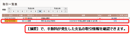 このとき「先方負担」を選択すると、支払の取引に「支払手数料」という明細行が自動的に作成されます。対し、「当方負担」を選択したときは、手数料は「支払手数料」という名称の経費の取引として作成されます。