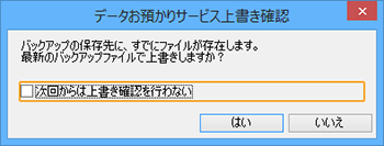 [データお預かり設定]で、[サーバーにファイルが存在しても、上書きの確認をせずに送信する]にチェックがついていない場合には、上書きの確認メッセージが表示されます。