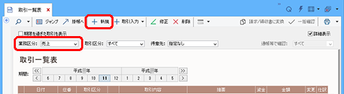 | ・ | ナビゲーションバーの分類[メニュー]から[取引]→[取引入力]→[○○の入力]をクリック |