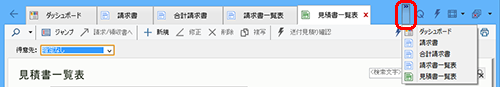 [請求書]ウィンドウや[ダッシュボード]ウィンドウなどを表示すると、ウィンドウ上端(タブバー)に、ウィンドウ名が書かれたタブが表示されます。