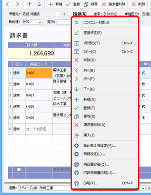 右メニューは、そのときどきでよく使われる機能や操作がまとめられたもので、効率よくデータを編集したり、どのような操作が実行できるのかを確認したいときに便利です。