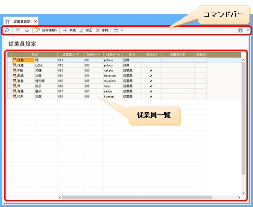 ●[従業員設定]ウィンドウ