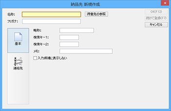 ここでは[納品先設定]ウィンドウでの登録方法を説明します。