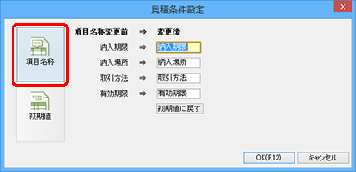 ●[見積条件設定]ダイアログの[項目名称]ページ