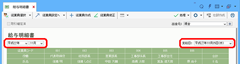 | 1. | 給与を支給する年月を選択し、支給日を確認します。 |