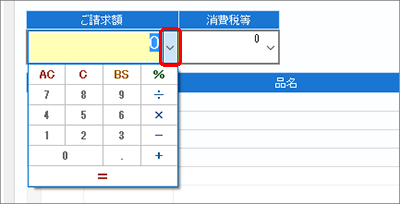 2. この状態で、項目右端の下矢印ボタンをクリックすると、電卓が表示されます。
