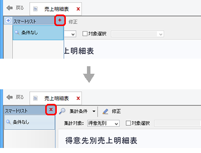 スマートリストで選択中の検索条件を削除できます。
