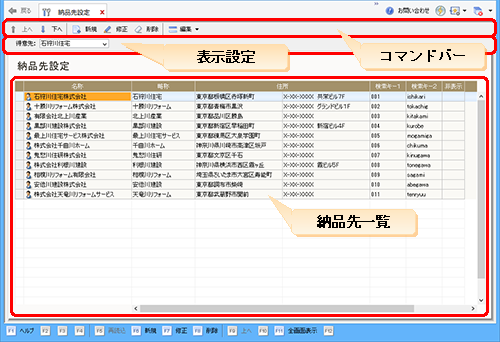 [削除] | クリックすると、納品先一覧で選択中の納品先が削除されます。 | |||||||||||||||