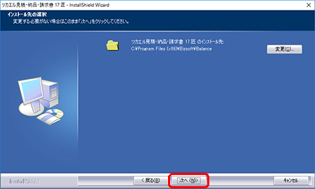 | 7. | インストール先のフォルダを確認し、[次へ]ボタンをクリックします。 |