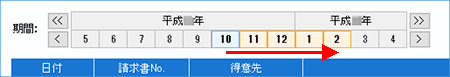 | 3. | 開始月から終了月までをドラッグします。 |
