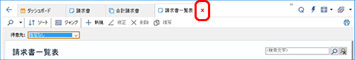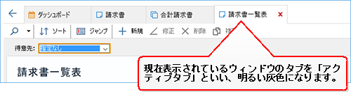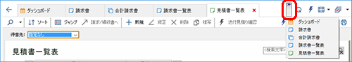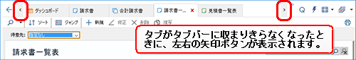 [請求書]ウィンドウや[ダッシュボード]ウィンドウなどを表示すると、ウィンドウ上端(タブバー)に、ウィンドウ名が書かれたタブが表示されます。