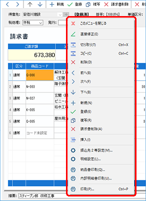 右メニューは、そのときどきでよく使われる機能や操作がまとめられたもので、効率よくデータを編集したり、どのような操作が実行できるのかを確認したいときに便利です。