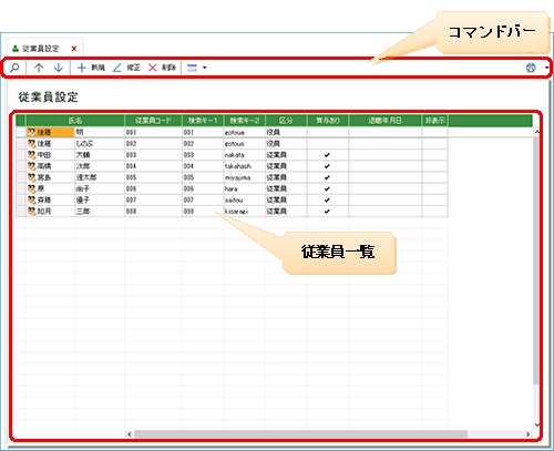 クリックすると、従業員一覧で選択中の従業員が削除されます。 |