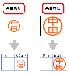 印刷できる従業員のハンコの画像サイズは、請求書や領収書などのハンコの枠と同じ1.3cm×1.3cmに調整されます。 このサイズよりも小さいサイズの画像を使うと拡大されるため、印刷される画像が実際の画質よりも粗く見えてしまうので注意が必要です。 なお、ハンコ枠のサイズと調整される画像サイズが同じため、画像内の上下左右に余白があるハンコの画像を用意すると体裁よく印刷できます。