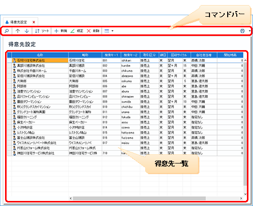 [得意先設定]ウィンドウに登録した得意先は、主に請求書や売上・回収の取引を入力する際に利用します。