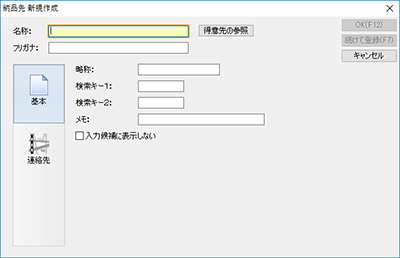●[納品先新規作成]ダイアログの[基本]ページの項目