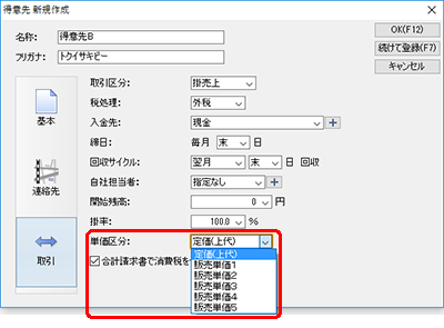 | 8. | [単価区分]で適用する単価を選択し、[OK]ボタンをクリックします。 |