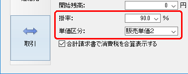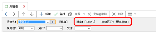 [掛率]に100%以外を入力している場合は、「[単価区分]の値段 × [掛率]」が単価となります。