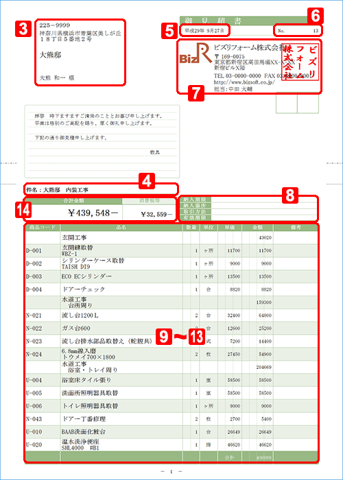 ここでは見積書を基本的な操作で作成します。