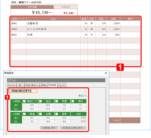 [明細の幅を変更する] |
