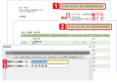 用紙2ページ目以降(明細ページ)上部に印刷される印刷物のタイトルを、最大16文字で入力します。 |