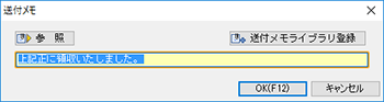 入力した文言を送付メモとして登録するには、[送付メモライブラリ登録]ボタンをクリックしてください。次回以降、[参照]ボタンで選択できるようになります。