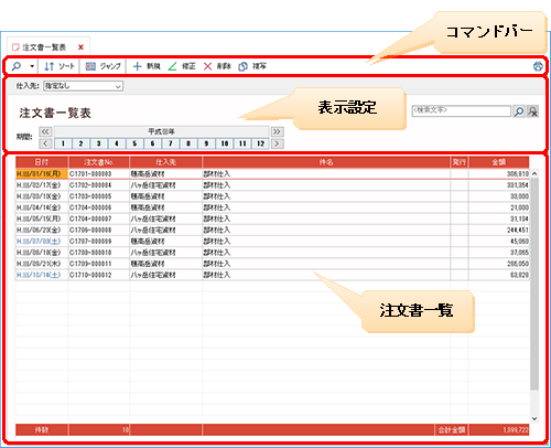 ●[注文書一覧表]ウィンドウ