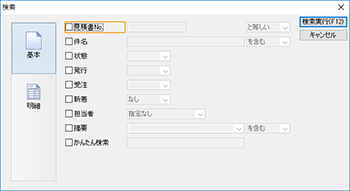[検索]ダイアログを使用し、ダイアログで指定した条件に該当する見積書・請求書・領収書・注文書のみを取引一覧に表示します。