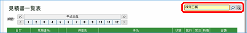 [見積書一覧表]ウィンドウのみ表示されます。 検索したい受注を指定します。 「 」「受注済」を条件として指定できます。 |