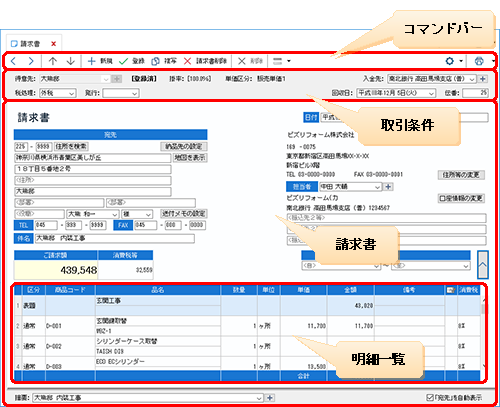 [請求書]ウィンドウでは、掛取引を入力することができます。