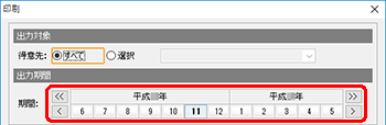 | 5. | [期間]で印刷対象とする取引の年と月を選択します。 |